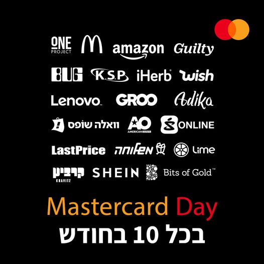 מאסטרקארד דיי מתקיים בכל 10 לחודש. ניתן לממש את קוד הקופון החל משעה 10:00 ועד סוף היום.