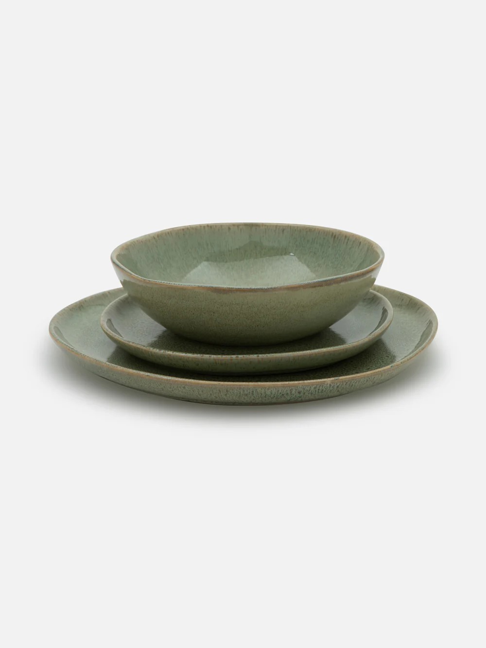 צלחות קרמיקה בצביעת "וואש", הנתאפיינות בקו עגול וא-סימטרי