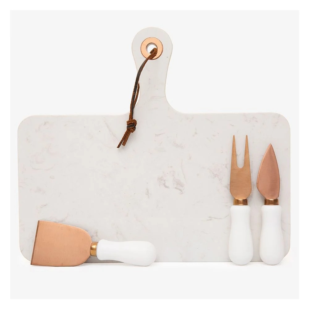 מגש בדוגמת שיש עם ידית ו-3 סכיני גבינה